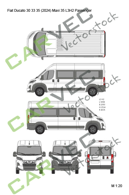 Vektor Vorlage Fiat Ducato 30 33 35 (2024) L3H2 Maxi 35 verglast