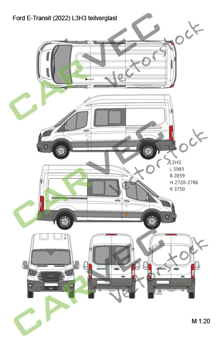 Vektorzeichnung Ford E-Transit L3H3 teilverglast (2022)