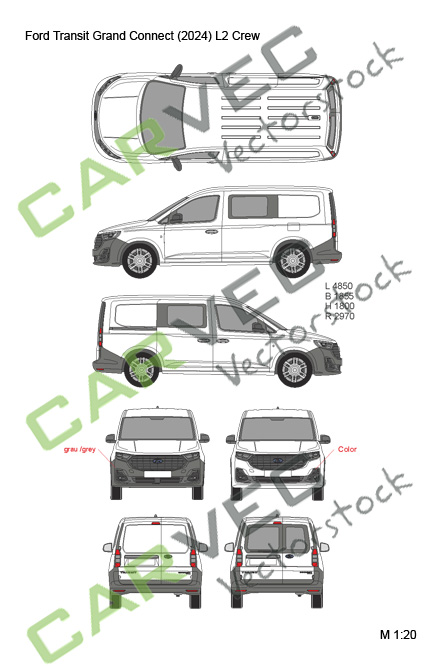Vektorvorlage Ford Transit Grand Connect (2024) L2 Doppelkabine (teilverglast)
