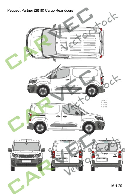 Vektorzeichnung Peugeot Partner (2018) Kasten Hecktür