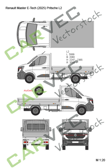 Vektorvorlage Renault Master E-Tech (2025) L2 Pritsche