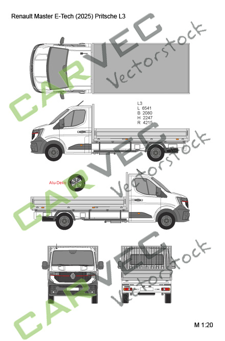 Vektorvorlage Renault Master E-Tech (2025) L3 Pritsche