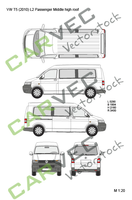 Vektor Vorlage VW Transporter T5 (2010) Kombi L2 Mittelhochdach