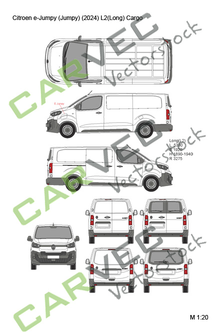 vector file blueprint Citroen  e-Jumpy (Jumpy)  long (L2) Cargo (2024)