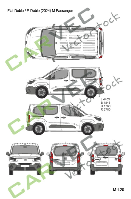 Vector template, blueprint Fiat Doblo  /E-Doblo (2024) M (L1) Passenger