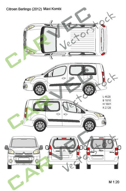 archivo vectorial blueprint Citroen Berlingo (2012) Maxi Passenger