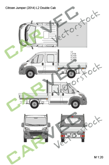Plantilla de vector Citroen Jumper (2014) L2 Double Cab