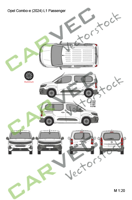 Plantilla de vector Opel Combo-e (2024) L1 Passenger