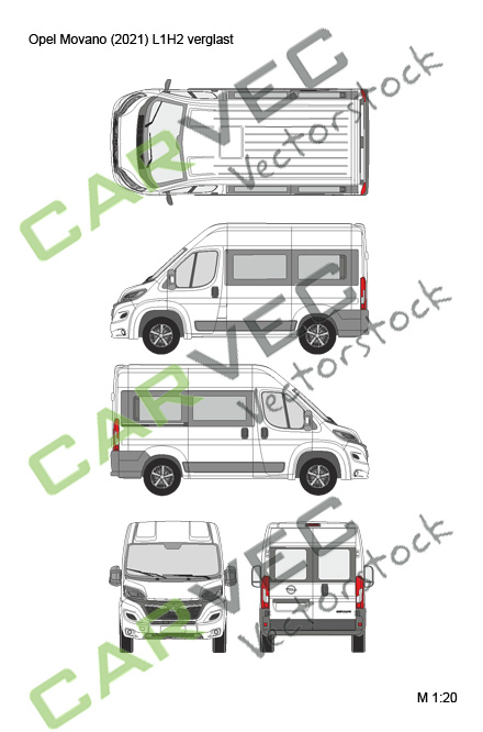 Dibujo vectorial Opel Movano (L1H2) verglast 2021