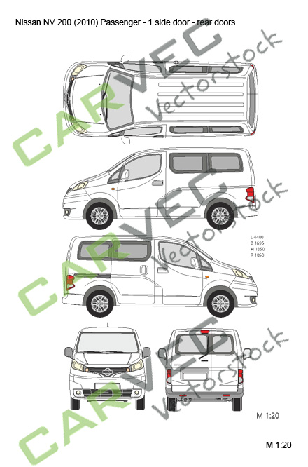 blueprint Nissan NV200 L1 Passenger (2010) 1 side door, rear doors