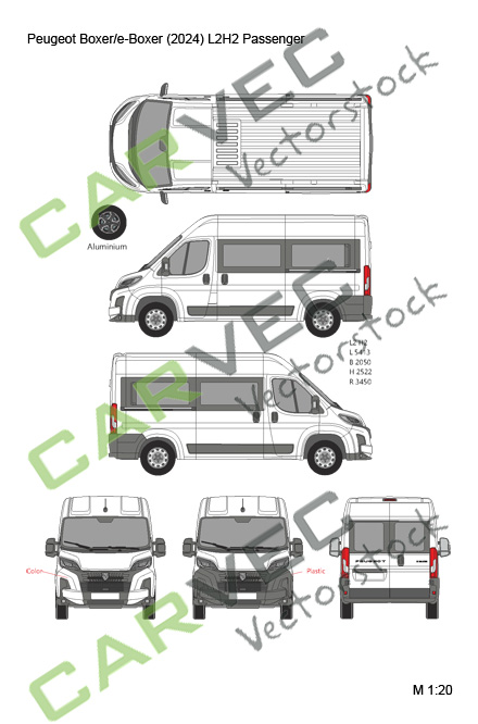 graphique vectoriel Peugeot Boxer (E-Boxer) (2024) L2H2 Passenger