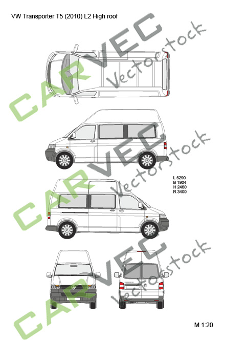 Modèle vectoriel VW Transporter T5 (2010) L2 Passenger high roof
