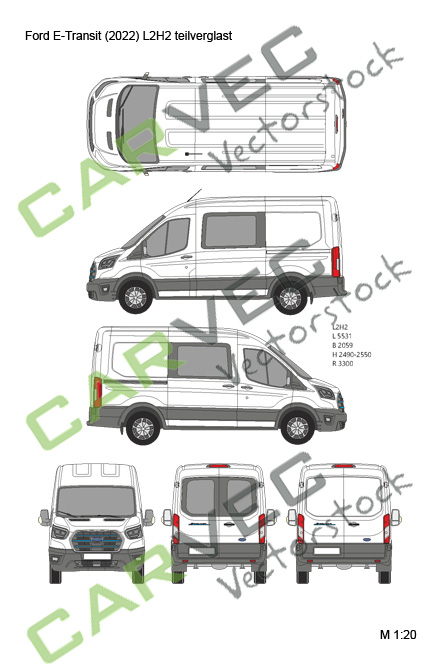 Disegno vettoriale Ford E-Transit L2H2 teilverglast (2022)