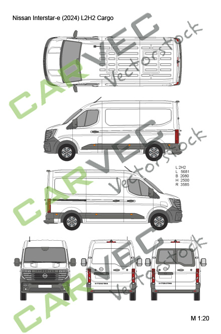 Disegno vettoriale, modello, progetto Nissan Interstar-e (2024) L2H2 Cargo