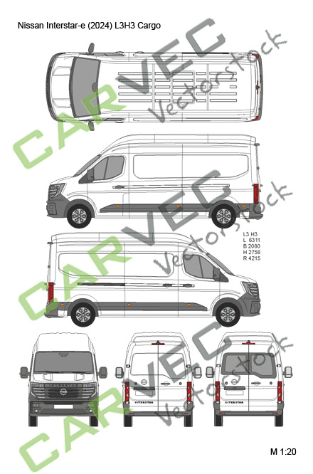 Disegno vettoriale, modello, progetto Nissan Interstar-e (2024) L3H3 Cargo