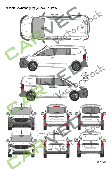 Disegno vettoriale, modello, progetto Nissan Townstar (EV) L2 (2024) Crew