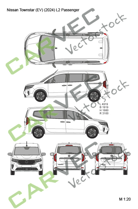 Disegno vettoriale, modello, progetto Nissan Townstar (EV) L2 (2024) Passenger